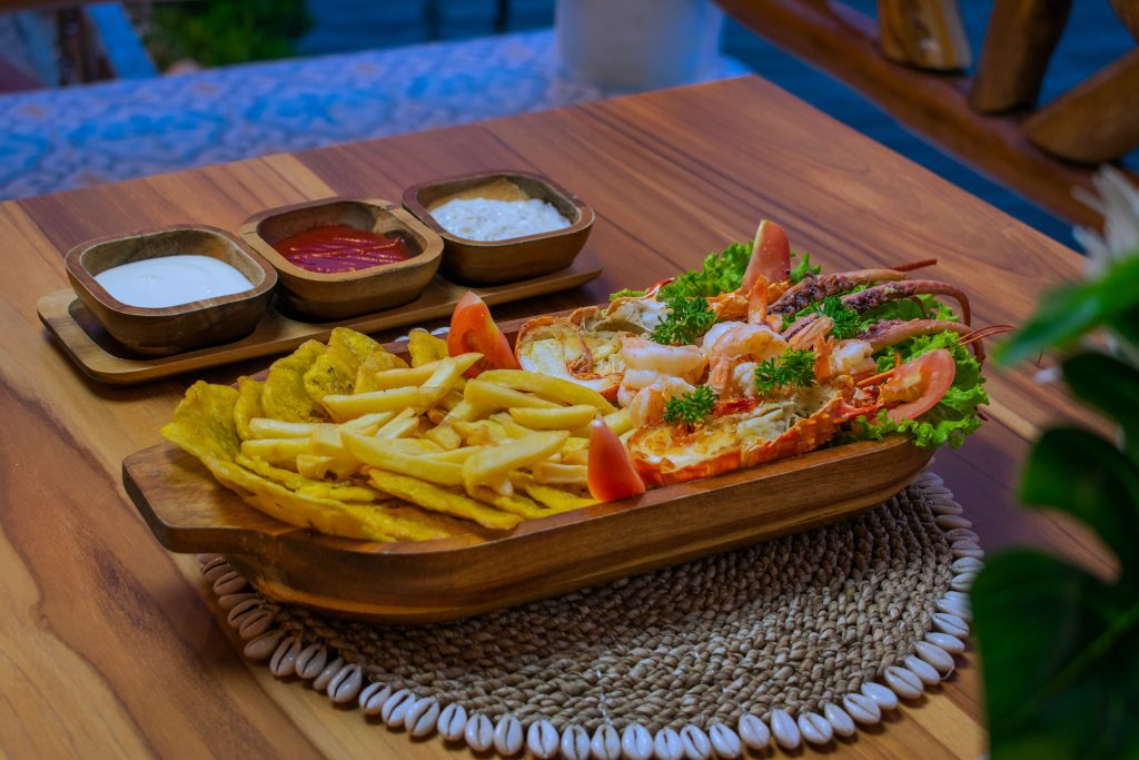 plancha: 200gr de langosta, langostinos, pescado, camarones, calamares, pulpo y caracol.